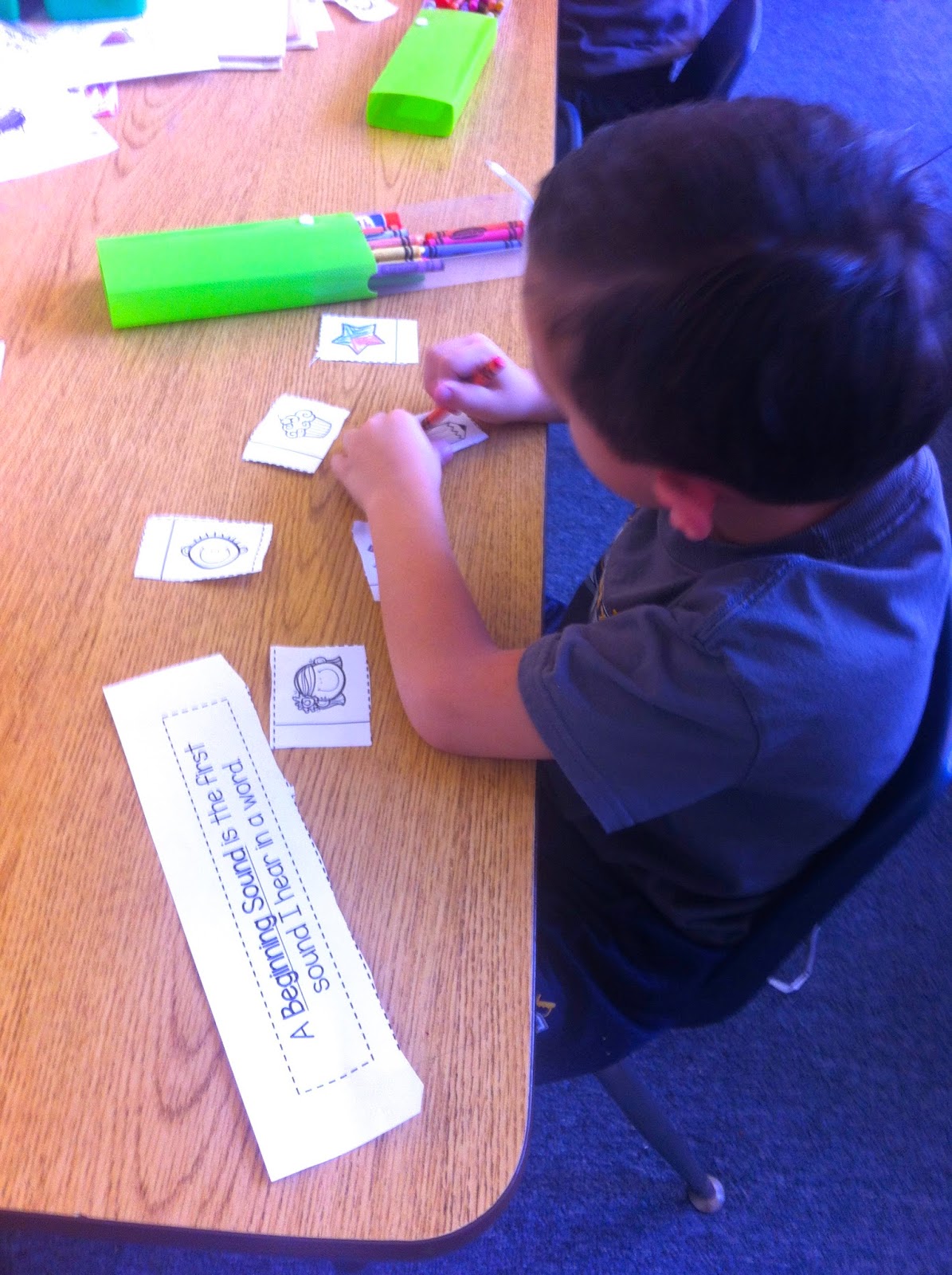 I really love this product, and my students love cutting, coloring, and gluing anything so it makes the tedious and repetitive process of learning the letter sounds a little bit more engaging. Before working on each letter sound individually, I had them complete this page about beginning sounds.