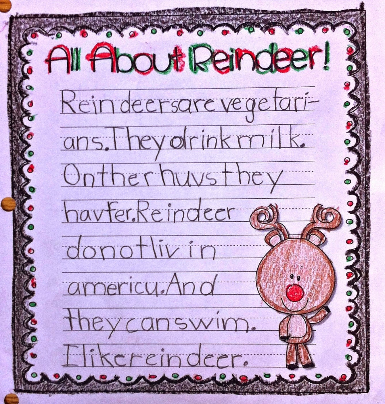After they finished writing we did this cute little Reindeer craft to frame our writing before hanging it up for everyone to see.