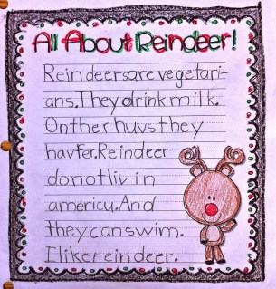 Then we talked about the new information that we learned about Reindeer and I passed out these All About Reindeer writing pages and told them to write me a report including everything that they knew about the animal. Some of them did a really awesome job!!