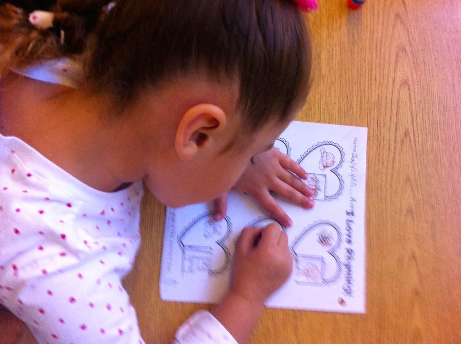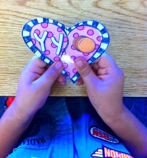 I let my room mom take the lead for our class Valentine’s day party and craft this year. She did a fantastic job and came up with a really cute gift for the kids to make for their parents, provided me with the instructions and all of the materials, and helped out with gluing, taking pictures, etc…she’s awesome. We did a few other valentine activities throughout the week that you can see below 🙂