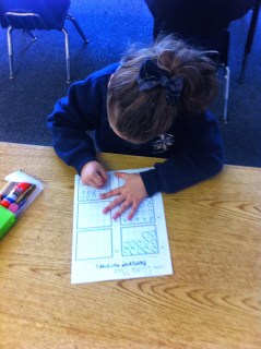 Then the kids did their own ten frame worksheets but filled in raindrops instead of counters: