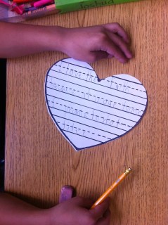 Once everyone finished, I cut them out and hung them up on our classroom door: