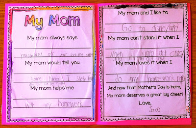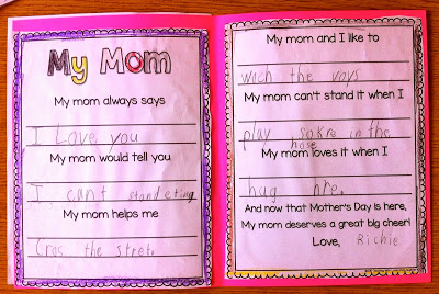 We talked about what is special about our Moms and then completed a super cute directed drawing activity from Heidi’s blog and writing activity from Teaching with Love and Laughter that you can read more about here. The finished products were so cute that I just had to share!