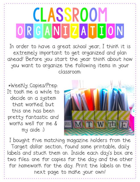 Right now I am working on a Back to School Survival kit for you all 🙂 It is not even close to being done, but I did finish the classroom organization section and thought I would go ahead and share some ideas with you now.