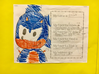 Disclaimer: Some of my boys did not want to draw a self-portrait so I ended up with a few that looked like this: