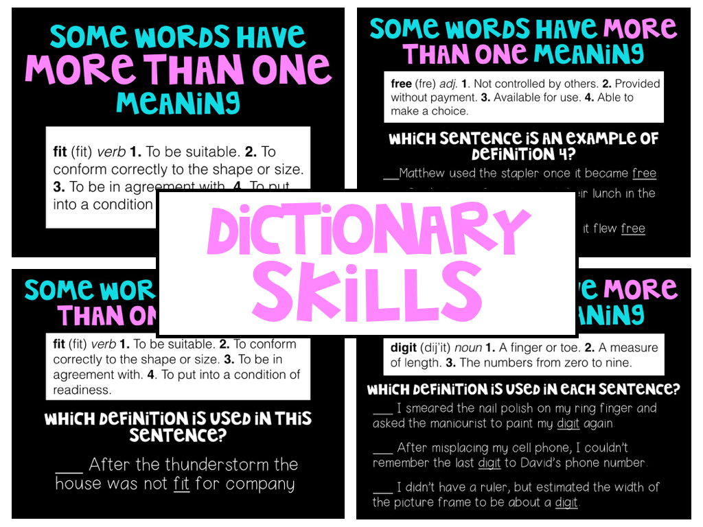 Once we got the basic information down about word reference materials we took a closer look at each one and worked on using guide words and understanding the use of multiple-meaning words from the dictionary. We completed a few practice question together and then students got some independent practice using the worksheets included in this unit.