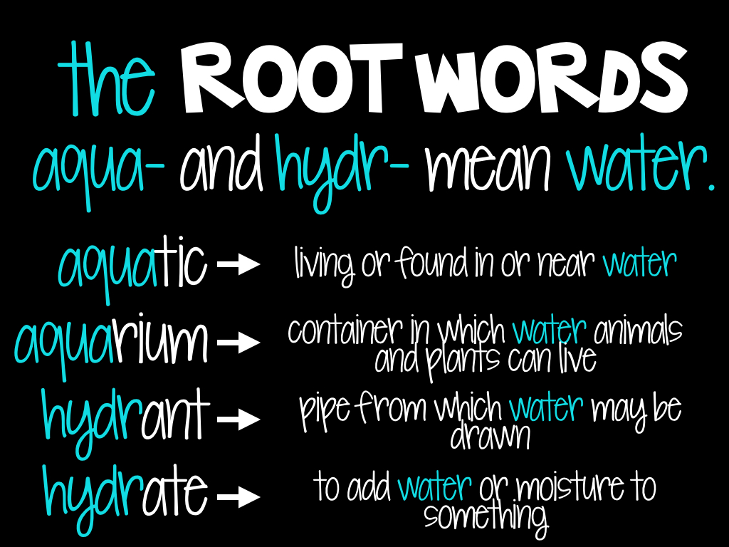 I have not been doing the best job of keeping up with our Growing Words (a.k.a. Greek & Latin prefixes, root words, and suffixes) this quarter so this week we dove back in to that starting with the Root Words Aqua- and Hydr-, which both mean water.