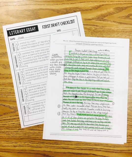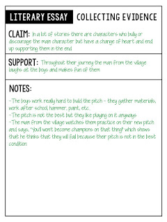 At that point I decided to create a checklist for writing a Literary Essay and I used it to score all of their essays. Before giving the essays back, I showed them the checklist and had them use it to grade two of the sample student essays that we had looked at at the beginning of the unit.