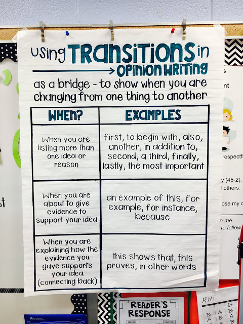 We did have to go back and review transition words and when/how to use them in the middle of this bend, so I made this chart as a reference tool: