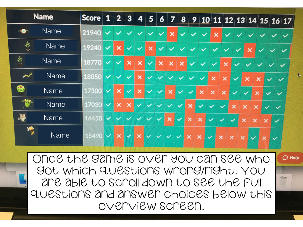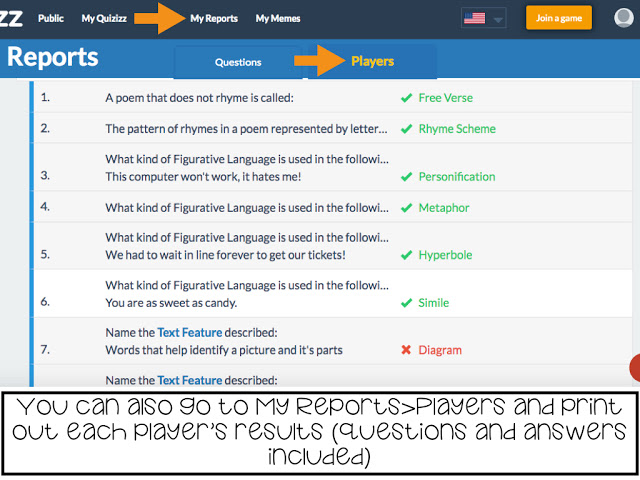 This is the best thing about Quizizz in my opinion! The day after they played my third quarter review game, I gave them printed copies of the questions and their own answers, marked correct or incorrect, and had them use their notes to fix any of the ones that they got wrong.