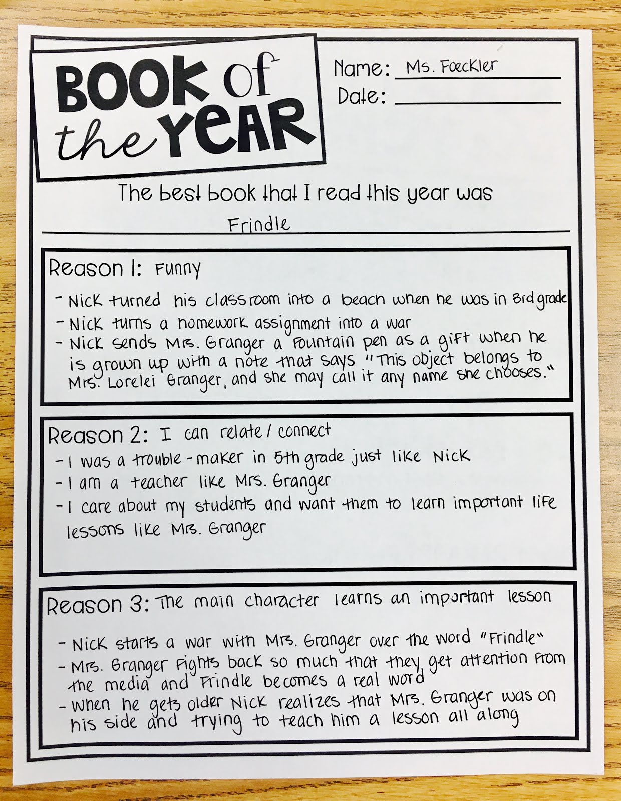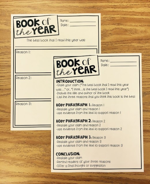 Once everyone has completed this project, we have a day where students can read each others’ essays and vote on the book of the year that they think is best using the ballot cards included in this product.