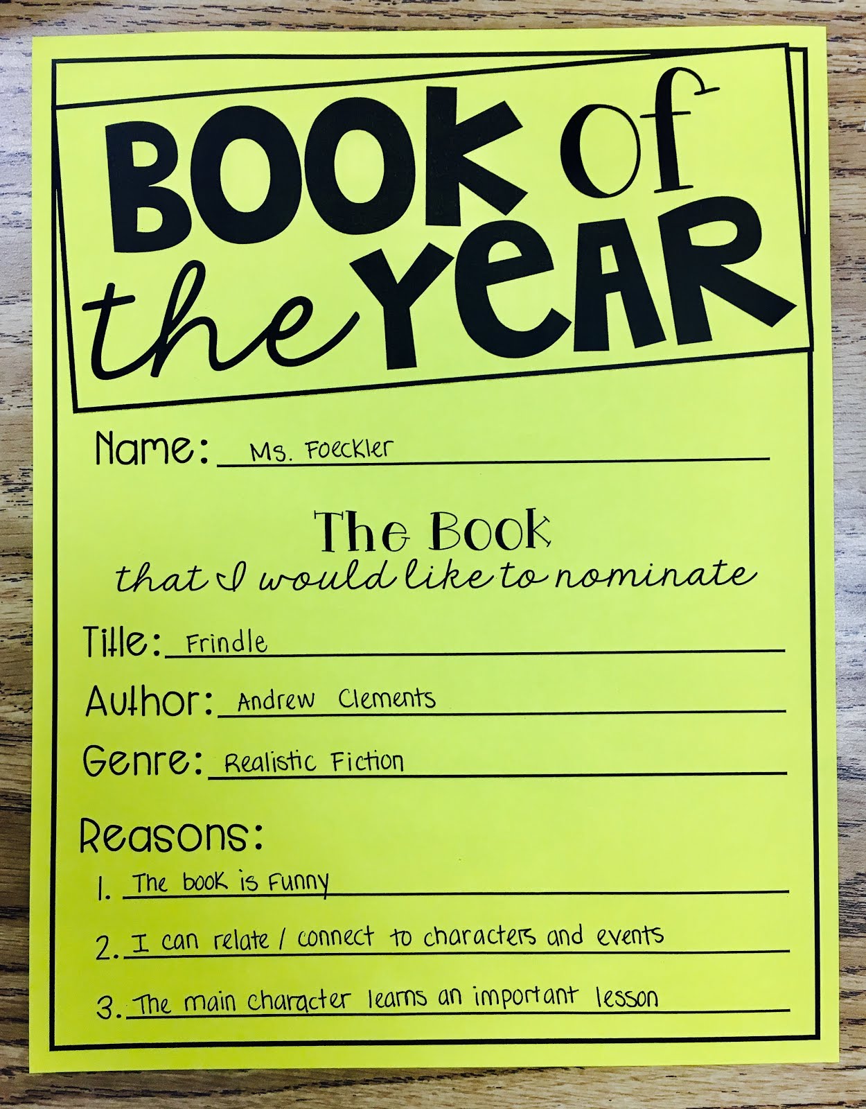 I will place a drawing of the winning book on the poster template included in this product and hang it up in our classroom library.