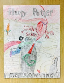 Most of the kids in my class love to draw, so to make this project a little more fun for them, I start by having them draw the cover of the best book that they read all year. I usually ask them to draw it on plain white paper in pencil and then I copy their drawings onto cardstock and have them color the copy in. That way I can laminate them and use them to decorate the room!