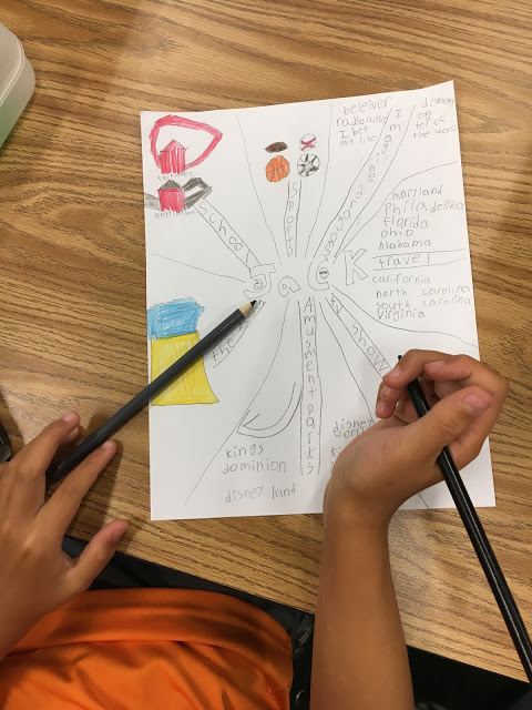 They had us draw a picture or write our name in the middle of a page and then draw roads coming from the center for the “main ideas” or things in our life that are important/make us special. Along each road we added details and then when we were finished we had to go around the room and explain why we drew each thing on our map and what it meant. It was a great activity to get to know the other teachers at the session and it really helped me and my students get to know each other during the first week too!