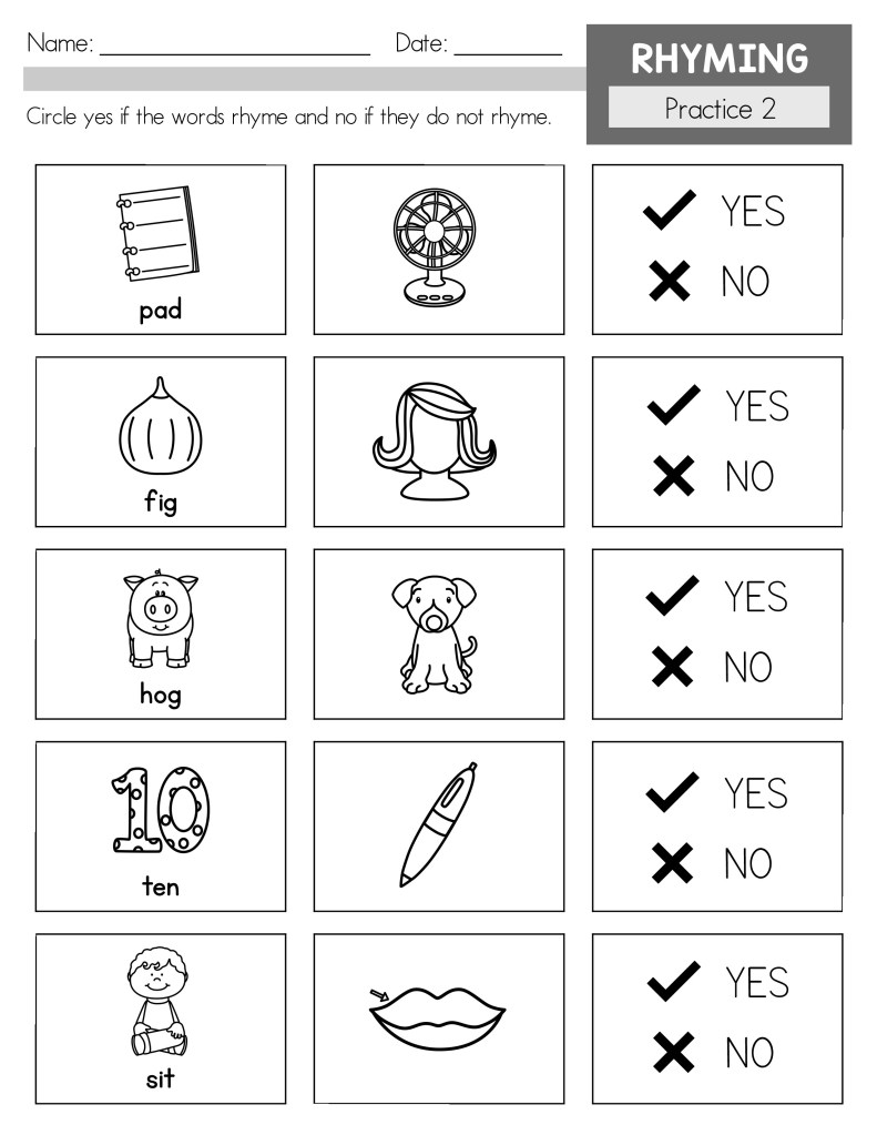 I also created three Rhyming Practuce Sheets for each subskill/set of slides. You can check out the sheets for the first lesson on rhyme recognition below.