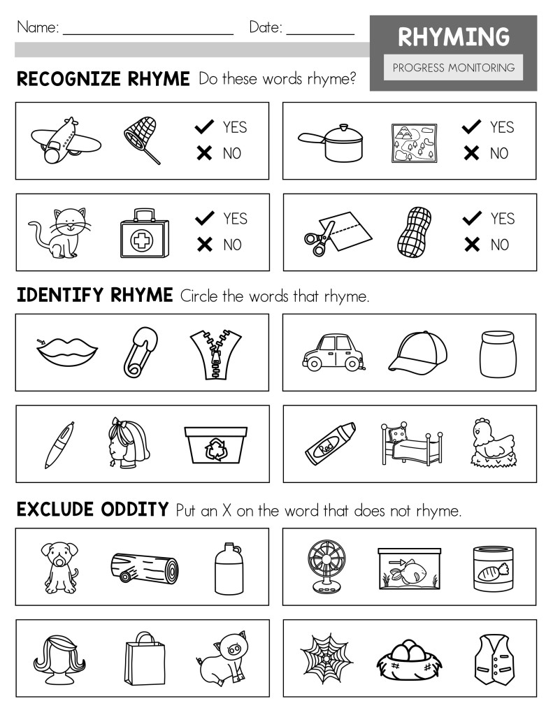 I use the worksheets for informal progress monitoring after each lesson, but I wanted a cumulative assessment that focused only on rhyming so I could make sure that my kids mastered all of the rhyming subskills before moving on to the next skill.